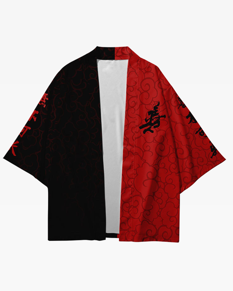 Black And Red Kimono Jacket decorated with many Japanese kanjis, bringing a streetwear touch to this traditional garment.