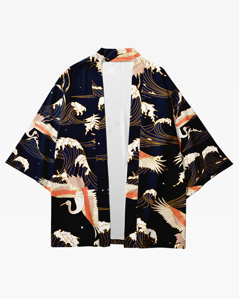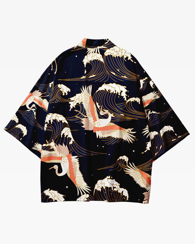 Add more variety to your look with this Crane Print Kimono from our Kimono Jacket collection.