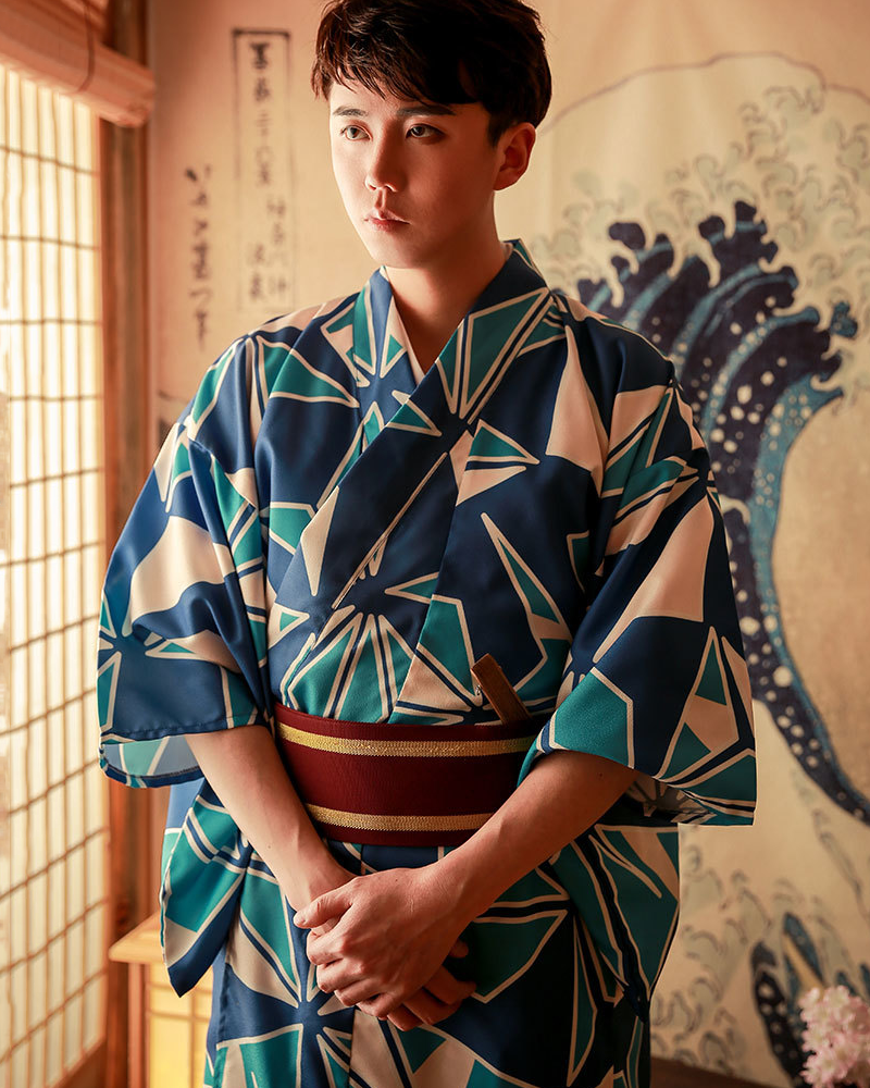 This Blue And White Kimono, decorated with patterns referring to origami, will please all true lovers of Japanese culture.