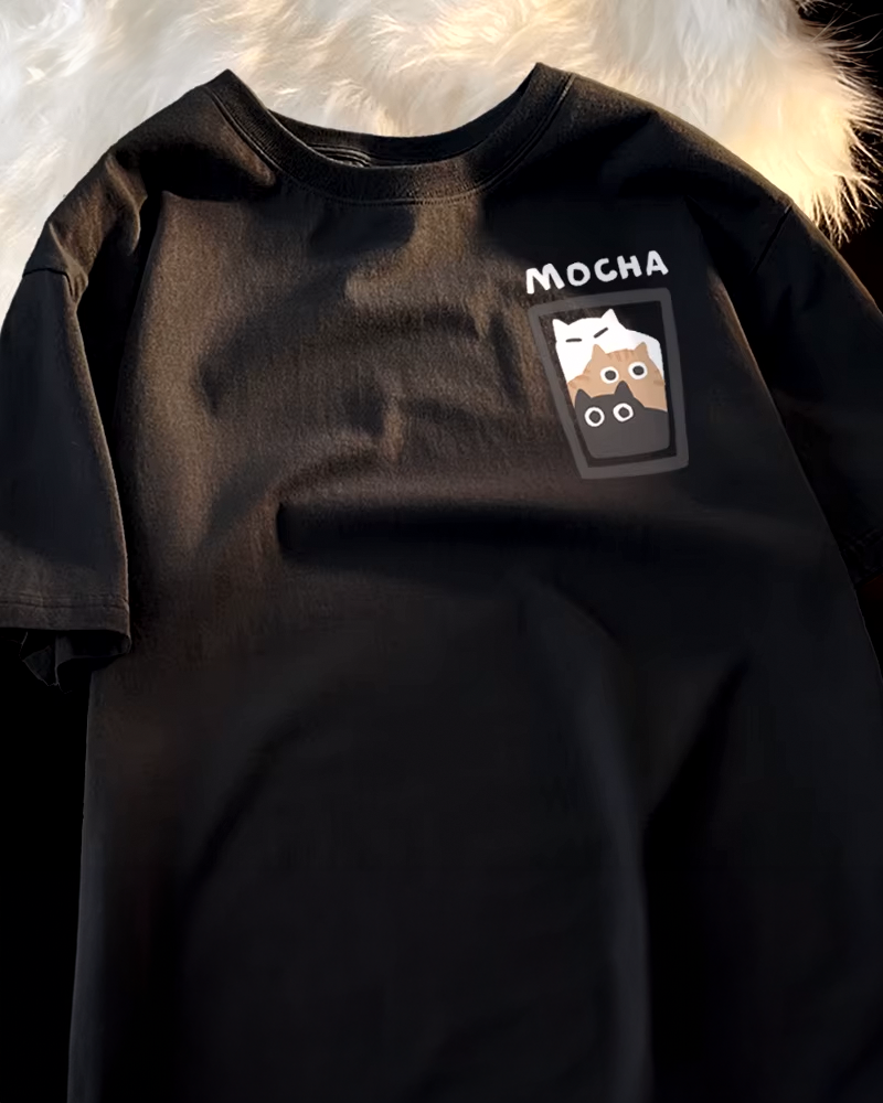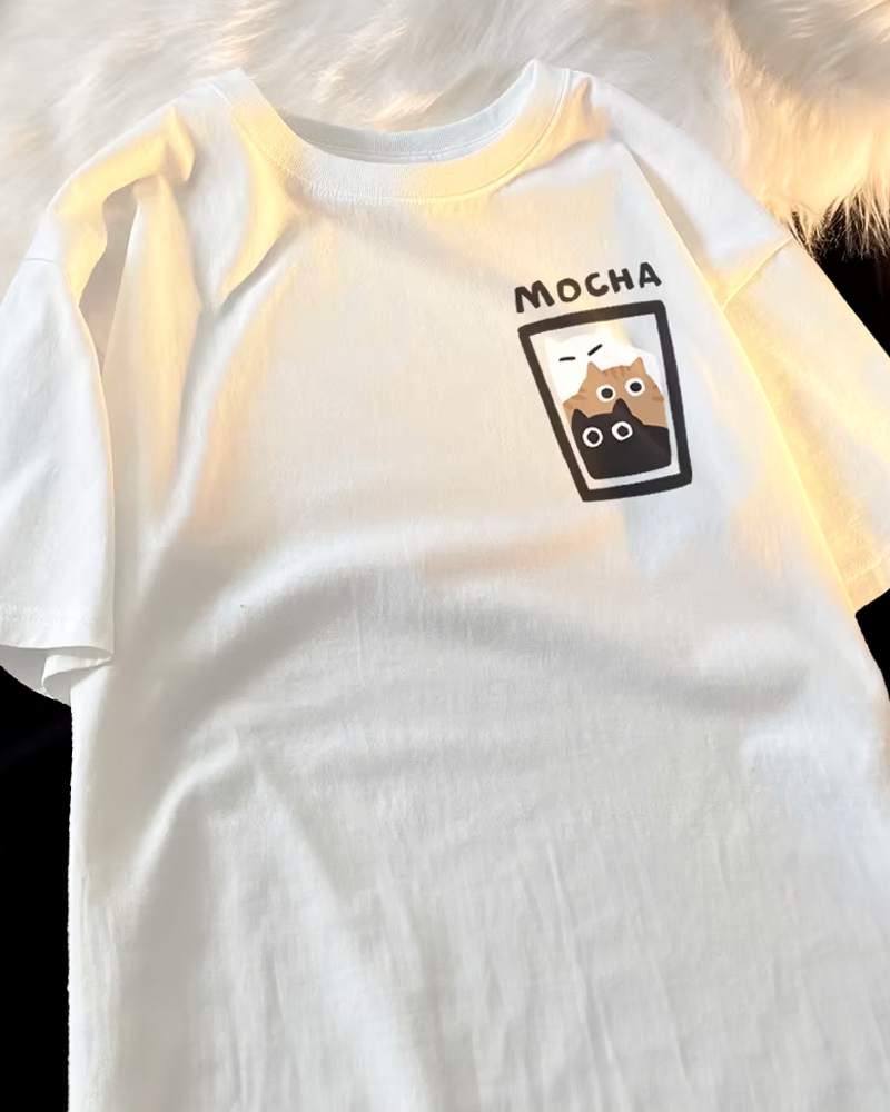 Our Coffee Cat Shirt, made from quality material, features mocha cat print on the front, a regular fit and is available in 3 colors. Get yours today!
