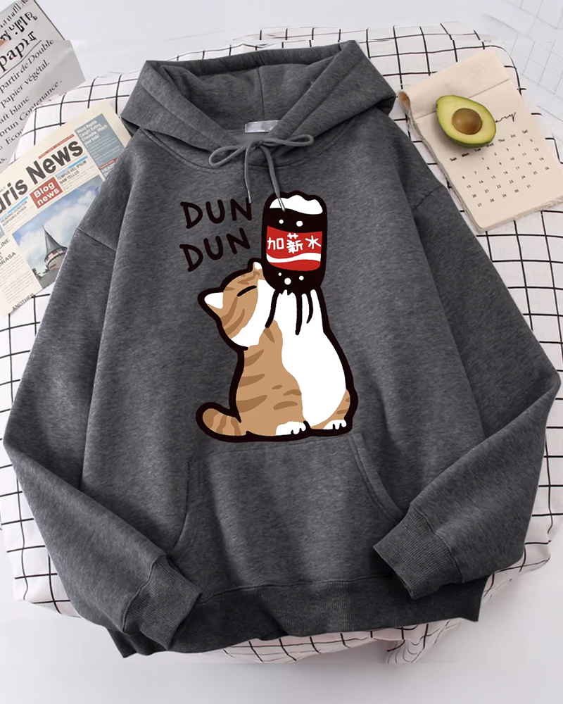 Add a touch of cuteness to your outfits with our Drinking Cat Hoodie.
