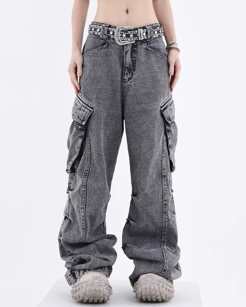 Our Gray Cargo Jeans, made from quality materials, feature a faded effect, two cargo pockets and a baggy cut, making them both stylish and trendy.