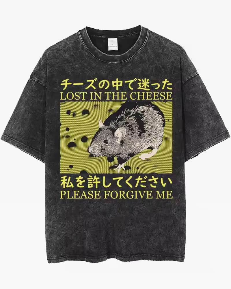 Elevate your Japanese streetwear style with our Lost In The Cheese Please Forgive Me Shirt.