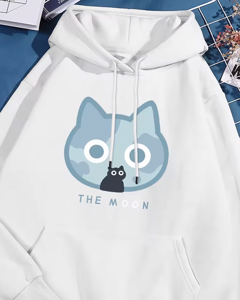 Our Moon Cat Hoodie, made from quality material, features a "The Moon" cat print on the front, a hood with drawstring and is available in 5 colors.