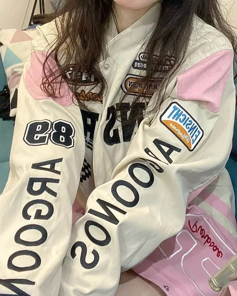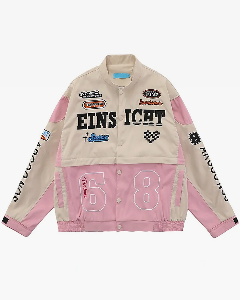 Add a touch of Y2K streetwear to your wardrobe with our Pink Racing Jacket.