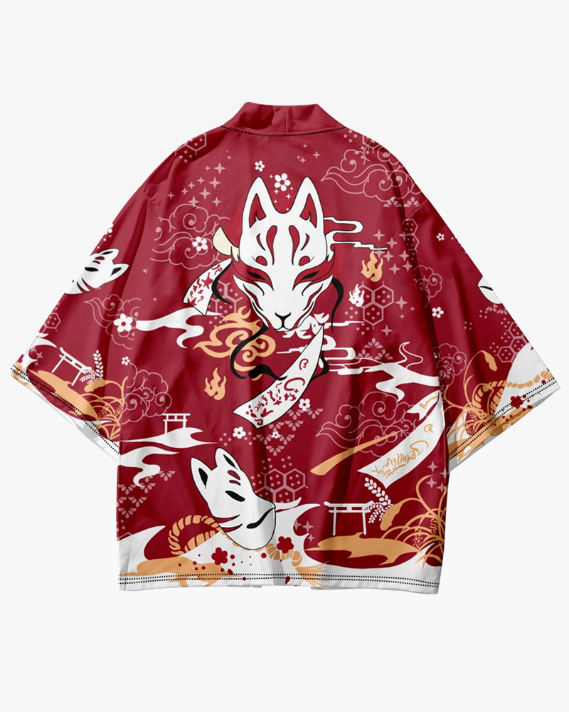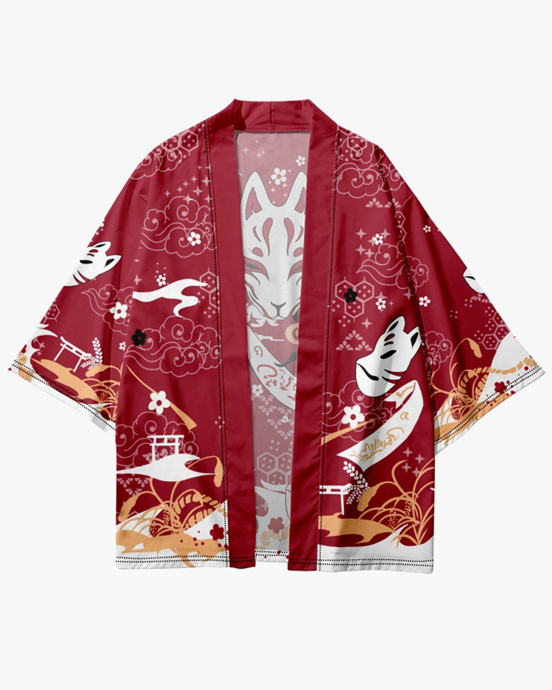Add a touch of Japanese culture to your outfit with this Red Kimono Cardigan featuring a kitsune from Japanese folklore.