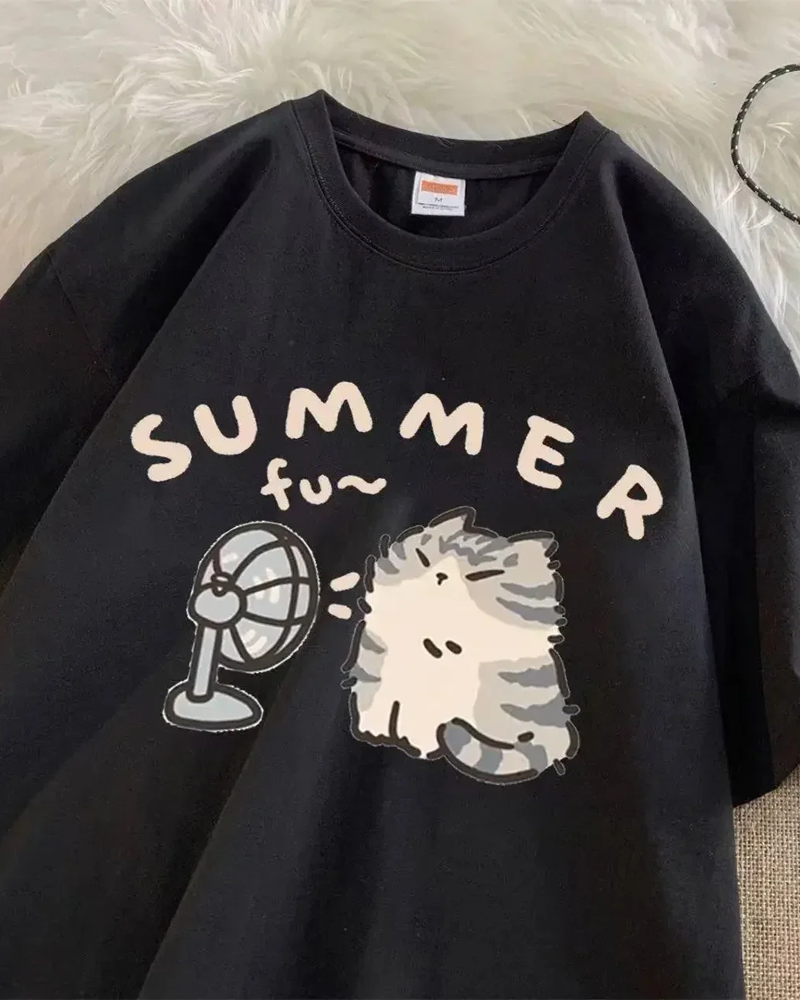 Add a touch of cuteness to your outfits with our Summer Cat T Shirt.