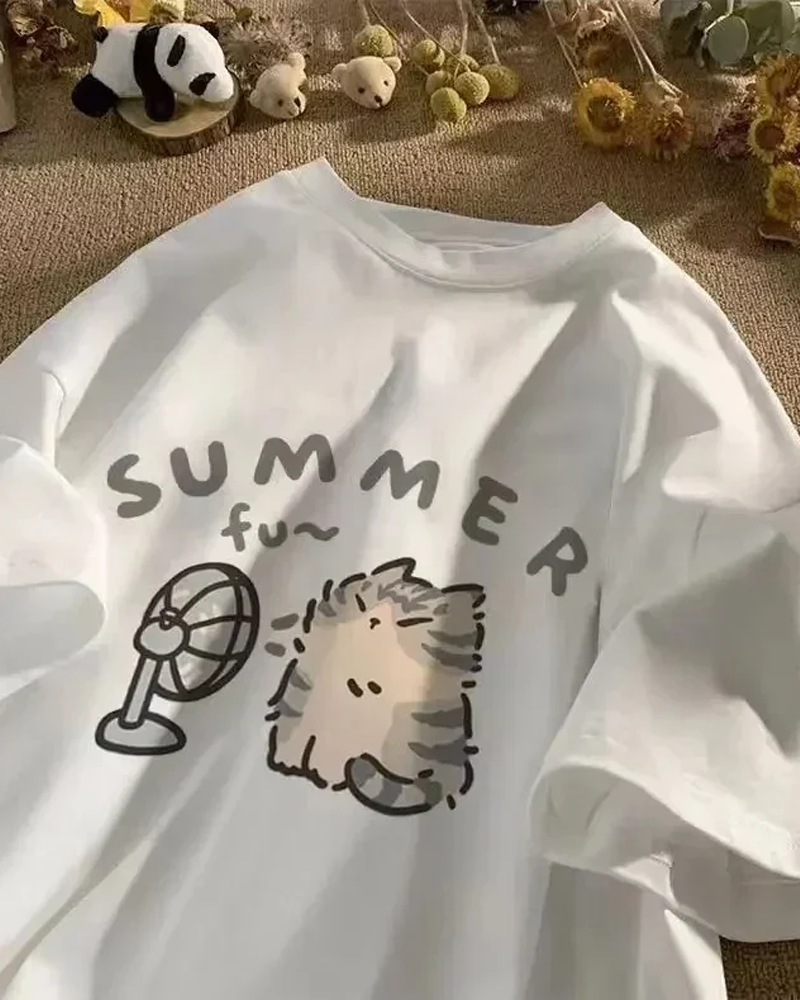 - Cute summer cat print on the front