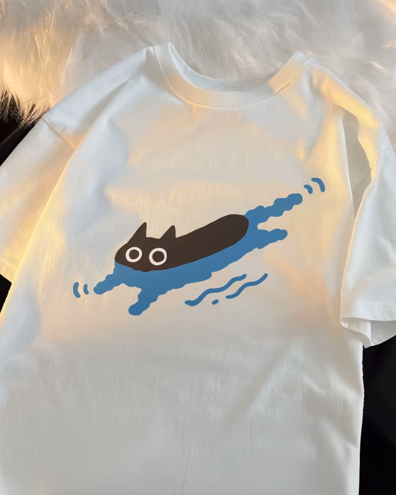 Add a touch of cuteness to your outfits with our Swimming Cat Shirt.
