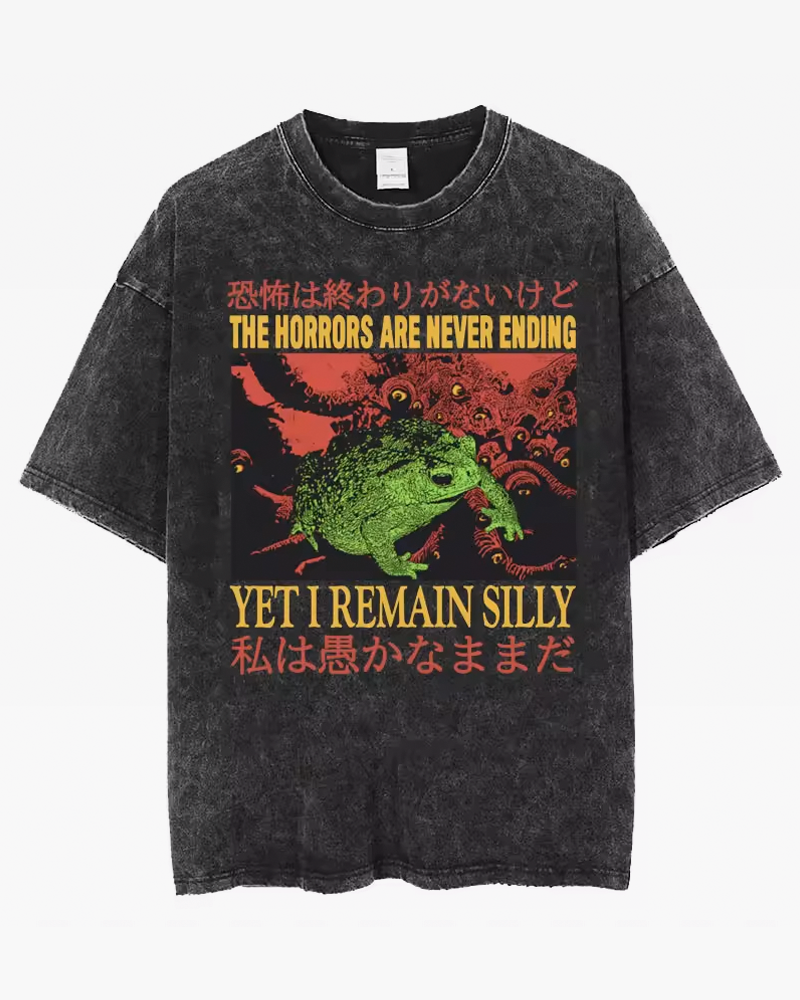 Elevate your Japanese streetwear style with our The Horrors Are Never Ending Yet I Remain Silly Shirt.